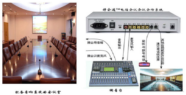 采用创新技术提供良好的会场通话解决方案,其特点是音质清晰、无杂音,使用特有的回声抑制技术彻底消除麦克风与音箱之间的振鸣(啸叫)现象,再大的会议室也能保证良好通话效果。系统具有电话线接口和音频输入输出接口,可通过调音台将会议室音响系统接入电话会议,也可直接接麦克风和音箱。