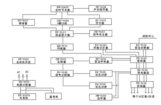 3.系统可对电源自动管理,发生火警会自动打开系统发出警报,也可定时播放。交流电源切断时,能自动转入直流供电系统,不影响紧急状态下的喊话和报警功能。