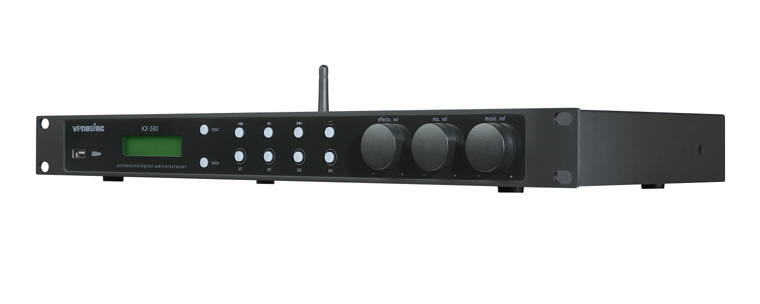 KX-580是一款高品质卡拉OK数字音频效果处理器,它采用全数字DSP算法和24bit/48KHz采样频率,声音还原真实、细腻、低频饱满,是专门针对卡拉OK唱歌效果的一台多功能音频处理系统,内置专业蓝牙播放功能,一键消除原唱功能;支持连接手机OTG直播内录;模式一键调用功能,自定义模式保存参数;支持连接电脑用作声卡使用 ;一键咪优先功能;出厂预设多个理想效果,一键调用,它也可以针对不同客户的需求,现场通过PC界面进行细化调节,方便在任何情况下都可以达到理想的效果。